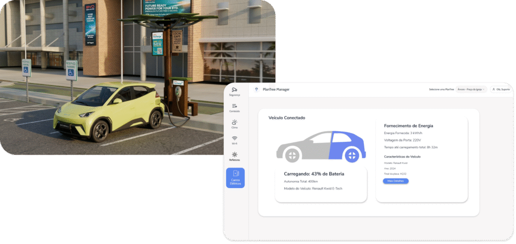 Nosso terminal IoT inteligente também oferece a opção acompanhada de um totem de carregamento de carros elétricos para qualquer ambiente urbano